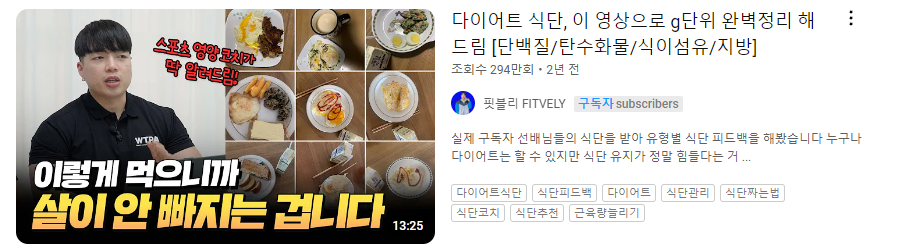 위식단 외에도 다양한 인플로언서들의 식단 관련 영상이 있으니, 참고해서 다이어트에 꼭 성공하세요!