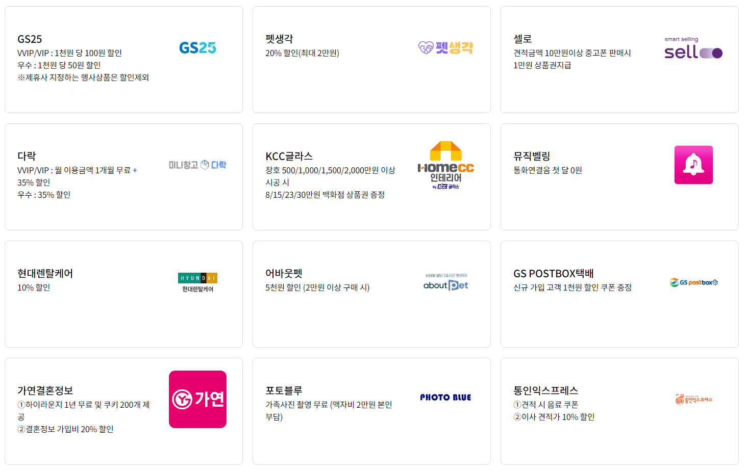- VVIP : 모바일 요금제 95,000원 이상 / 한 해 누적 통신요금 2백만 원 이상