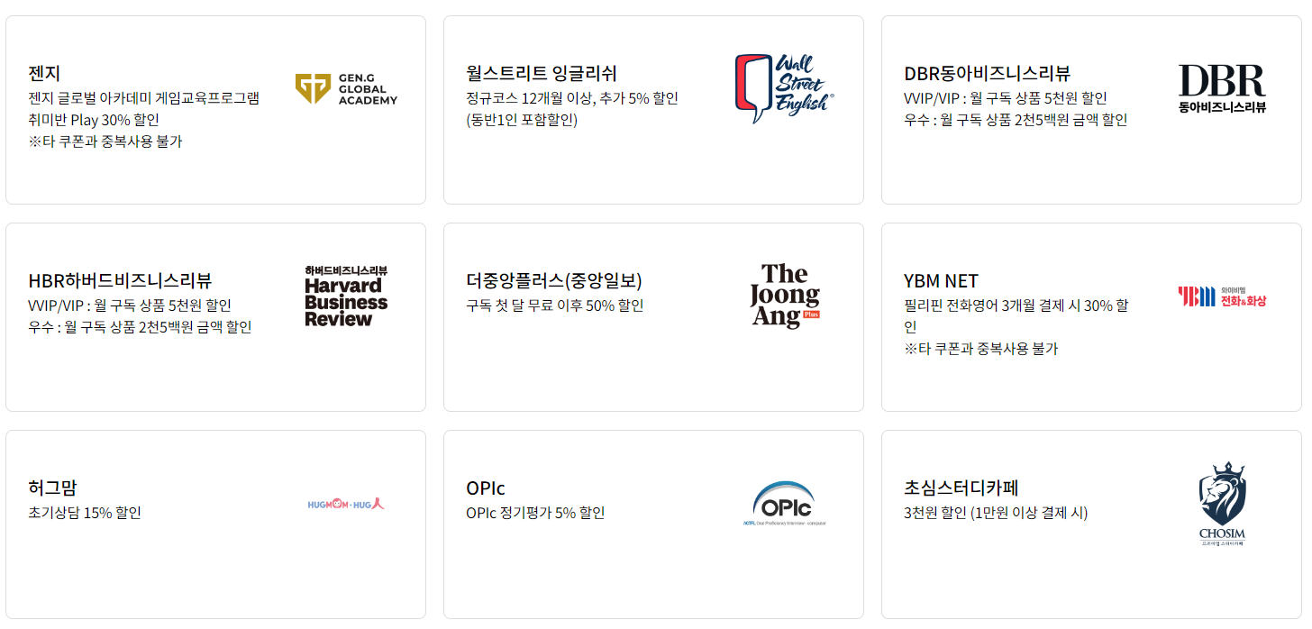 - 젠지, 월스트리트 잉글리시, DBR 동아비즈니스리뷰, HBR하버드 비즈니스리뷰, 더중앙플러스, YBM NET, 허그맘, OPIc, 초심스터디카페